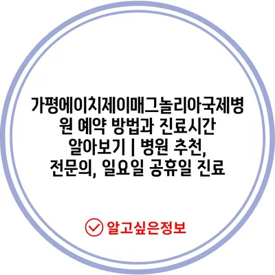 가평에이치제이매그놀리아국제병원 예약 방법과 진료시간 알아보기 | 병원 추천, 전문의, 일요일 공휴일 진료