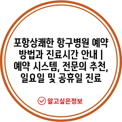 포항상쾌한 항구병원 예약 방법과 진료시간 안내 | 예약 시스템, 전문의 추천, 일요일 및 공휴일 진료