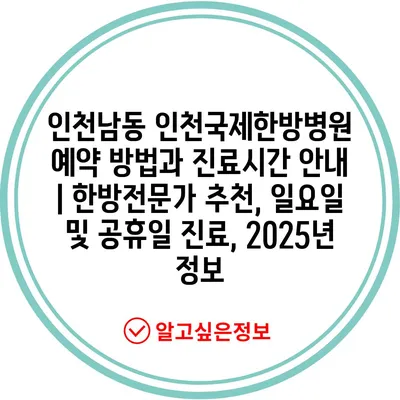 인천남동 인천국제한방병원 예약 방법과 진료시간 안내 | 한방전문가 추천, 일요일 및 공휴일 진료, 2025년 정보