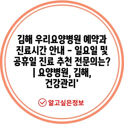 ✅ 김해 우리요양병원 예약 및 진료시간을 빠르게 확인해 보세요.