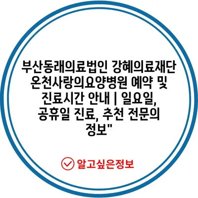 부산동래의료법인 강혜의료재단 온천사랑의요양병원 예약 및 진료시간 공지 | 일요일, 공휴일 진료, 추천 전연락 정보에 대해 자주 묻는 질문 TOP 5
