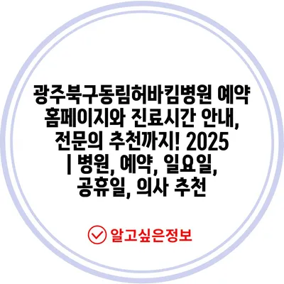 ✅ 광주북구동림허바킴병원의 진료시간과 예약 방법을 자세히 알아보세요.