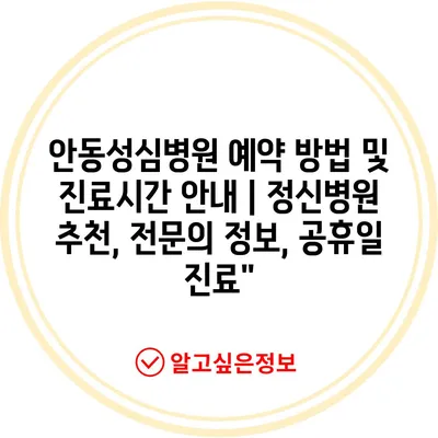 ✅ 안동성심병원의 예약 방법과 진료시간을 지금 바로 알아보세요!