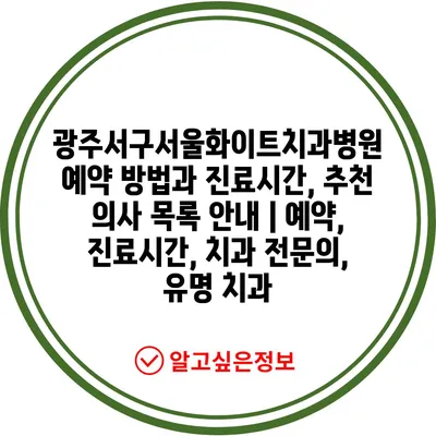 광주서구서울화이트치과병원 예약 방법과 진료시간, 추천 의사 목록 공지 | 예약, 진료시간, 치과 전연락, 유명 치과 에 대해 자주 묻는 질문 TOP 5