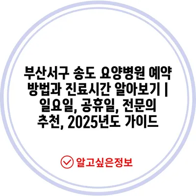 부산서구 송도 요양병원 예약 방법과 진료시간 알아보기 | 일요일, 공휴일, 전연락 추천, 2025년도 설명서 에 대해 자주 묻는 질문 TOP 5