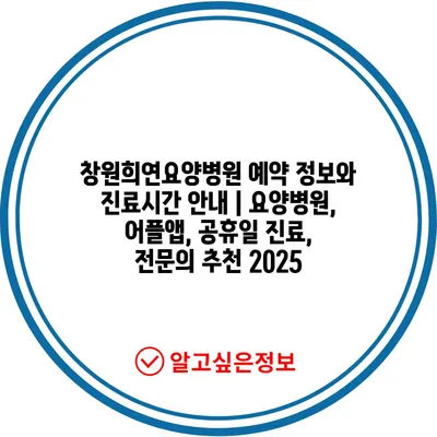창원희연요양병원 예약 정보와 진료시간 안내 | 요양병원, 어플앱, 공휴일 진료, 전문의 추천 2025