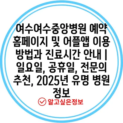 여수여수중앙병원 예약 홈페이지 및 어플앱 이용 방법과 진료시간 공지 | 일요일, 공휴일, 전연락 추천, 2025년 유명 병원 정보에 대해 자주 묻는 질문 TOP 5