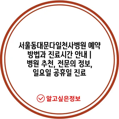 ✅ 서울동대문다일천사병원 예약 방법을 자세히 알아보세요.