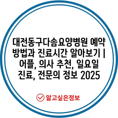 대전동구다솜요양병원 예약 방법과 진료시간 알아보기 | 어플, 의사 추천, 일요일 진료, 전연락 정보 2025 에 대해 자주 묻는 질문 TOP 5