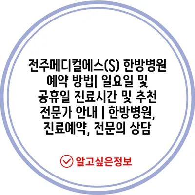 전주메디컬에스(S) 한방병원 예약 방법| 일요일 및 공휴일 진료시간 및 추천 전문가 공지 | 한방병원, 진료예약, 전연락 상담 에 대해 자주 묻는 질문 TOP 5
