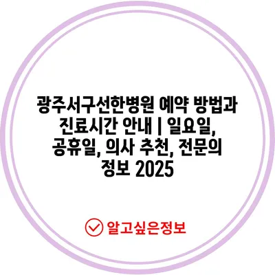 ✅ 광주서구선한병원의 진료시간과 예약 팁을 지금 바로 알아보세요.
