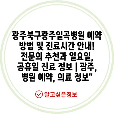 ✅ 광주일곡병원의 예약 방법과 진료시간을 지금 바로 확인해보세요!