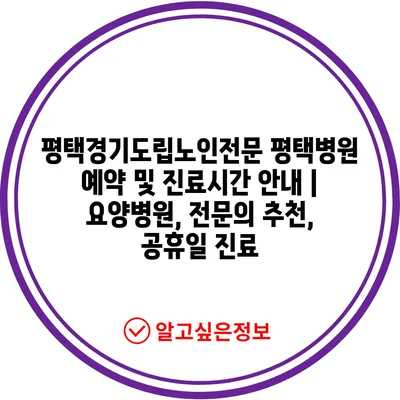 ✅ 평택경기도립노인전문 병원의 진료시간과 예약 절차를 확인해보세요.