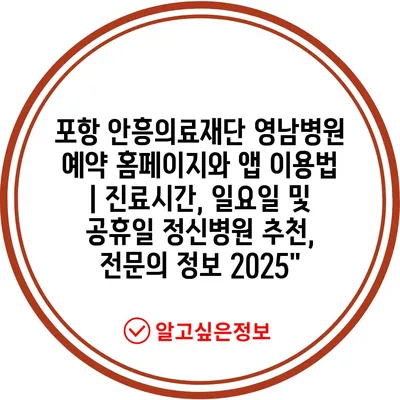 포항 안흥의료재단 영남병원 예약 홈페이지와 앱 이용법 | 진료시간, 일요일 및 공휴일 정신병원 추천, 전연락 정보 2025에 대해 알아보겠습니다.