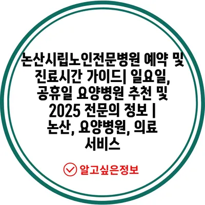 논산시립노인전문병원 예약 및 진료시간 설명서| 일요일, 공휴일 요양병원 추천 및 2025 전연락 정보 | 논산, 요양병원, 의료 서비스 에 대해 자주 묻는 질문 TOP 5