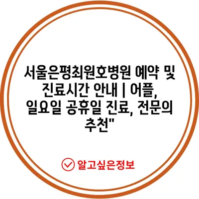 ✅ 서울은평최원호병원 예약 및 진료 시간을 자세히 알아보세요.