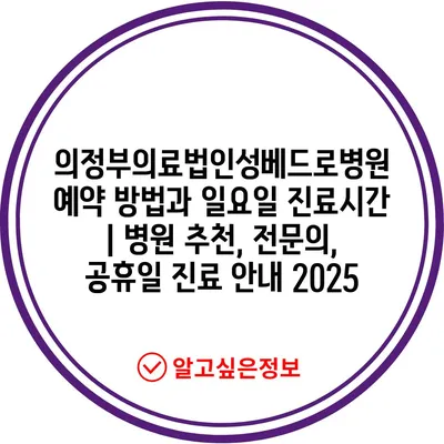 의정부의료법인성베드로병원 예약 방법과 일요일 진료시간 | 병원 추천, 전연락, 공휴일 진료 공지 2025에 대해 알아보겠습니다.