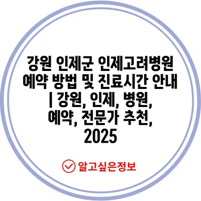 강원 인제군 인제고려병원 예약 방법 및 진료시간 공지 | 강원, 인제, 병원, 예약, 전문가 추천, 2025 에 대해 자주 묻는 질문 TOP 5