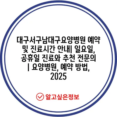 대구서구남대구요양병원 예약 및 진료시간 공지| 일요일, 공휴일 진료와 추천 전연락 | 요양병원, 예약 방법, 2025 에 대해 자주 묻는 질문 TOP 5