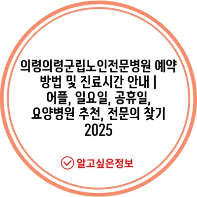 ✅ 의령군립노인전문병원 예약 방법을 자세히 알아보세요.