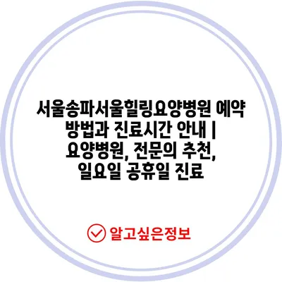 ✅ 서울송파서울힐링요양병원의 예약 절차와 진료시간을 알아보세요.