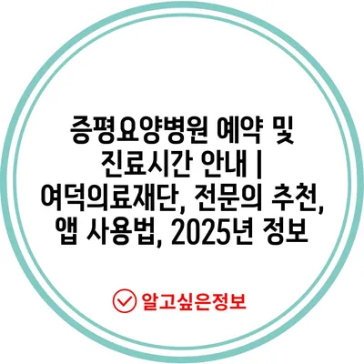 증평요양병원 예약 및 진료시간 공지 | 여덕의료재단, 전연락 추천, 앱 사용법, 2025년 내용을 알려알려드리겠습니다.