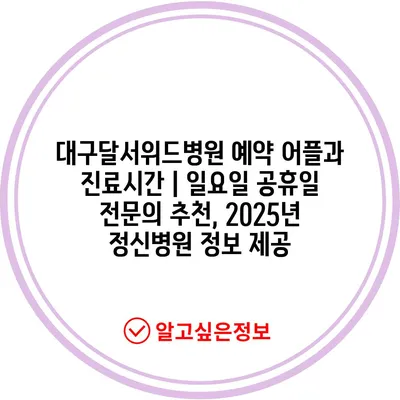 대구달서위드병원 예약 어플과 진료시간 | 일요일 공휴일 전연락 추천, 2025년 정신병원 정보 제공 에 대해 자주 묻는 질문 TOP 5