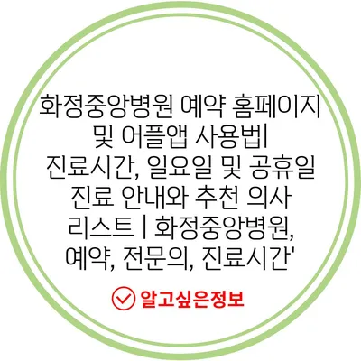 화정중앙병원 예약 홈페이지 및 어플앱 사용법| 진료시간, 일요일 및 공휴일 진료 공지와 추천 의사 리스트 | 화정중앙병원, 예약, 전연락, 진료시간’ 에 대해 자주 묻는 질문 TOP 5
