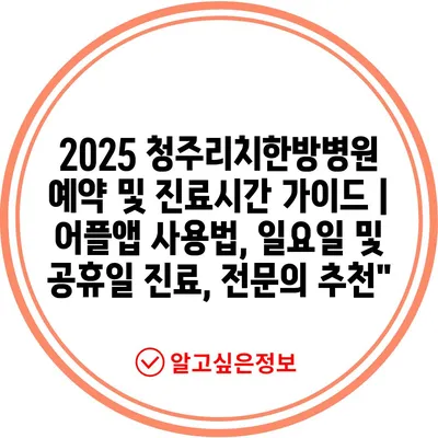 2025 청주리치한방병원 예약 및 진료시간 설명서에 대해 자세히 알아보겠습니다.