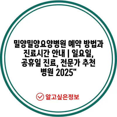 밀양밀양요양병원 예약 방법과 진료시간 공지 | 일요일, 공휴일 진료, 전문가 추천 병원 2025
