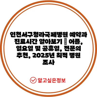 인천서구청라국제병원 예약과 진료시간 알아보기 | 어플, 일요일 및 공휴일, 전연락 추천, 2025년 최적 병원 조사