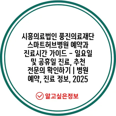 시흥의료법인 풍진의료재단 스마트허브병원 예약과 진료시간 설명서 – 일요일 및 공휴일 진료, 추천 전연락 확인하기 | 병원 예약, 진료 정보, 2025