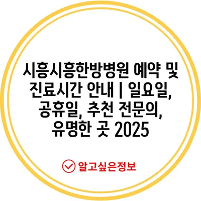 시흥시흥한방병원 예약 및 진료시간 공지 | 일요일, 공휴일, 추천 전연락, 유명한 곳 2025 에 대해 자주 묻는 질문 TOP 5