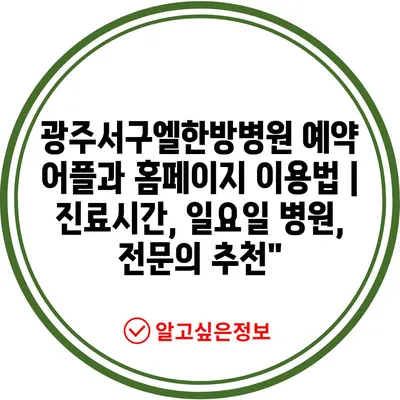 ✅ 광주서구엘한방병원의 진료시간과 예약 방법을 지금 바로 알아보세요.