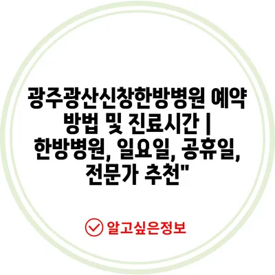 광주광산신창한방병원 예약 방법 및 진료시간 | 한방병원, 일요일, 공휴일, 전문가 추천에 대해 자주 묻는 질문 TOP 5