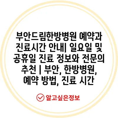 ✅ 부안드림한방병원의 예약 방법과 진료 시간을 자세히 알아보세요.