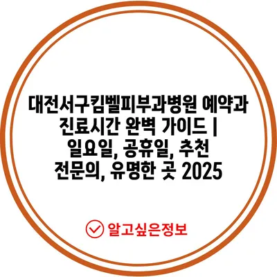 대전서구킴벨피부과병원 예약과 진료시간 완벽 설명서 | 일요일, 공휴일, 추천 전연락, 유명한 곳 2025