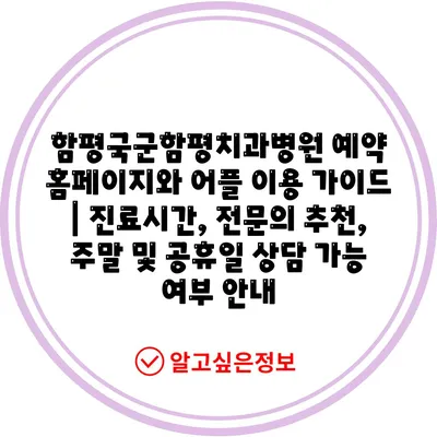 함평국군함평치과병원 예약 홈페이지와 어플 이용 설명서 | 진료시간, 전연락 추천, 주말 및 공휴일 상담 가능 여부 공지 에 대해 자주 묻는 질문 TOP 5
