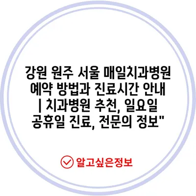 강원 원주 서울 매일치과병원 예약 방법과 진료시간 공지 | 치과병원 추천, 일요일 공휴일 진료, 전연락 정보에 대해 자주 묻는 질문 TOP 5