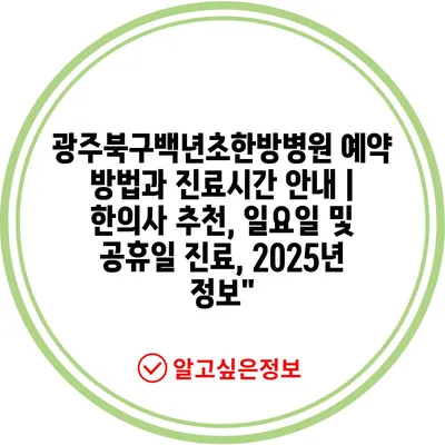 광주북구백년초한방병원 예약 방법과 진료시간 공지 | 한의사 추천, 일요일 및 공휴일 진료, 2025년 정보에 대해 자주 묻는 질문 TOP 5