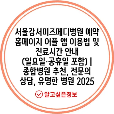 서울강서미즈메디병원 예약 홈페이지 어플 앱 이용법 및 진료시간 공지 (일요일·공휴일 포함) | 종합병원 추천, 전연락 상담, 유명한 병원 2025에 대해 알아보겠습니다.