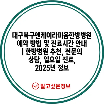 대구북구엔케이라피움한방병원 예약 방법 및 진료시간 안내 | 한방병원 추천, 전문의 상담, 일요일 진료, 2025년 정보