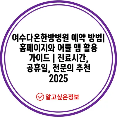 ✅ 여수다온한방병원 예약 방법을 자세히 알아보세요!