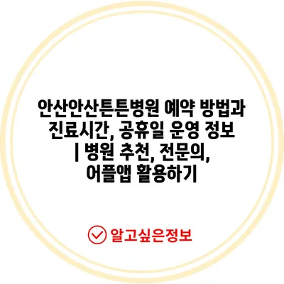 안산안산튼튼병원 예약 방법과 진료시간, 공휴일 운영 정보 | 병원 추천, 전연락, 어플앱 활용하기 에 대해 자주 묻는 질문 TOP 5