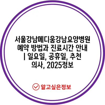 서울강남메디움강남요양병원 예약 방법과 진료시간 공지 | 일요일, 공휴일, 추천 의사, 2025정보 에 대해 자주 묻는 질문 TOP 5