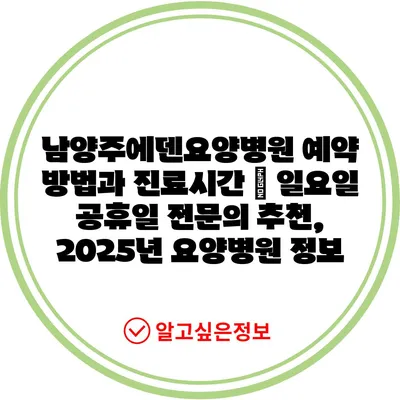 남양주에덴요양병원 예약 방법과 진료시간 | 일요일 공휴일 전연락 추천, 2025년 요양병원 정보 에 대해 자주 묻는 질문 TOP 5