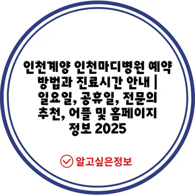 인천계양 인천마디병원 예약 방법과 진료시간 공지 | 일요일, 공휴일, 전연락 추천, 어플 및 홈페이지 정보 2025에 대해 알아보겠습니다.