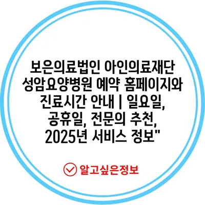 보은의료법인 아인의료재단 성암요양병원 예약 홈페이지와 진료시간 공지 | 일요일, 공휴일, 전연락 추천, 2025년 서비스 정보” 에 대해 자주 묻는 질문 TOP 5