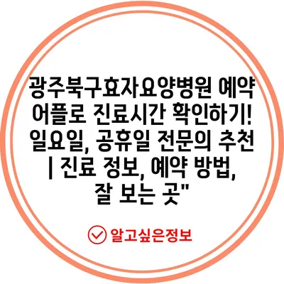 광주북구효자요양병원 예약 어플로 진료시간 확인하기! 일요일, 공휴일 전연락 추천 | 진료 정보, 예약 방법, 잘 보는 곳에 대해 자주 묻는 질문 TOP 5