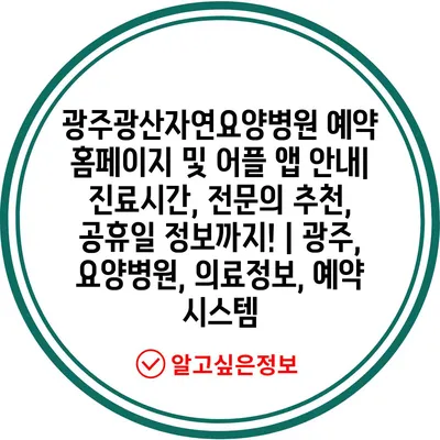 ✅ 광주광산자연요양병원의 예약 시스템을 지금 바로 알아보세요!